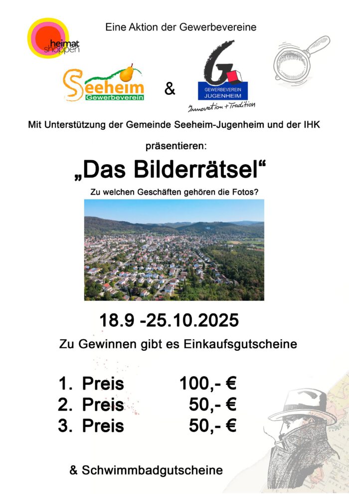 Auch in diesem Jahr haben sich die Gewerbevereine Seeheim und Jugenheim dazu entschlossen auf die Initiative der IHK „Heimatshoppen“ eine gemeinsame Aktion zu Starten. Dieses mal gilt es ein Bilderrätsel zu lösen. Unterstützt wird diese Aktion von der Gemeinde Seeheim-Jugenheim. Die Preise werden von den Gewerbevereinen und der Gemeinde Seeheim-Jugenheim gestiftet.